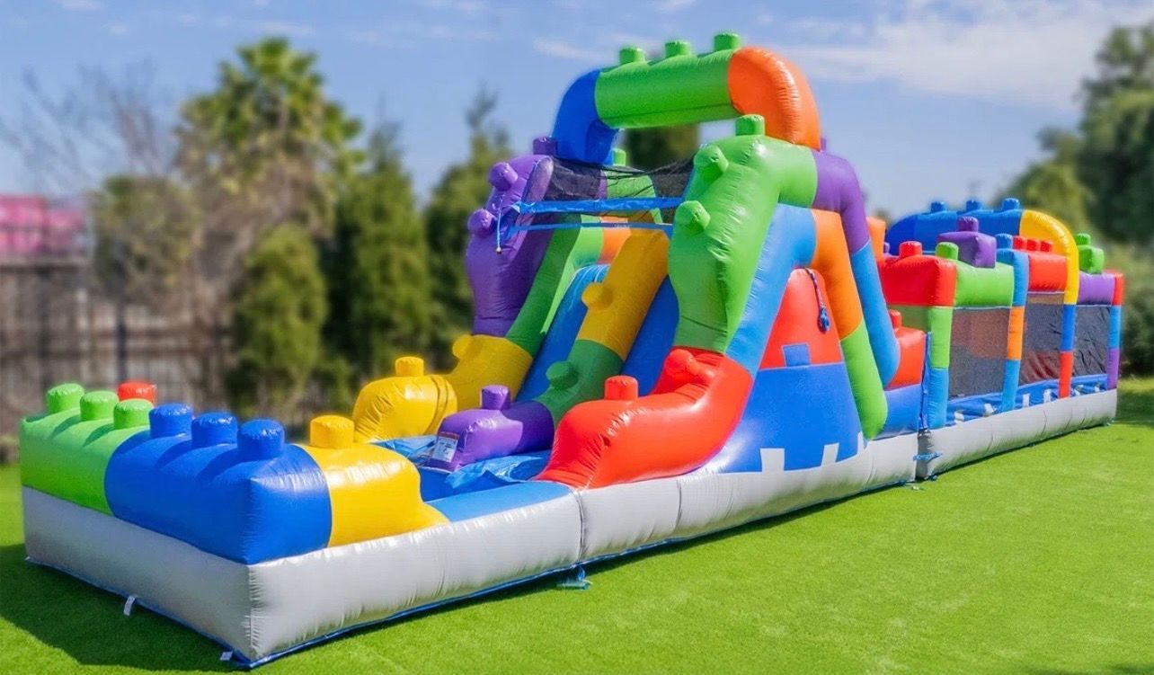 42’ Block Party Obstacle Course with Wet or Dry Slide